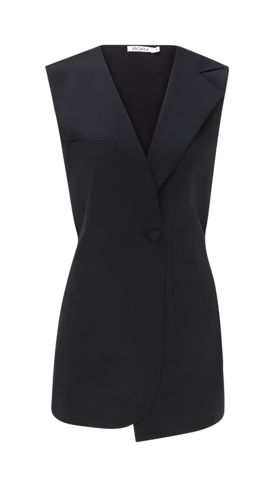 Regular price Dhs. 900.00 AEDRegular priceUnit price perSale price Dhs. 900.00 AEDCLASSIC ASYMMETRICAL VEST BLACK
