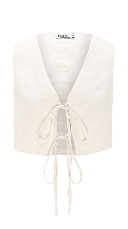 Regular price Dhs. 650.00 AEDRegular priceUnit price perSale price Dhs. 650.00 AEDLINEN CAPRI VEST WHITE