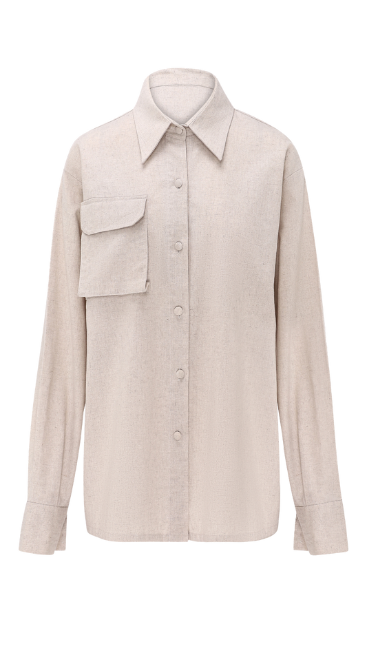 Regular price Dhs. 680.00 AEDRegular priceUnit price perSale price Dhs. 680.00 AEDLINEN CARGO SHIRT NUDE